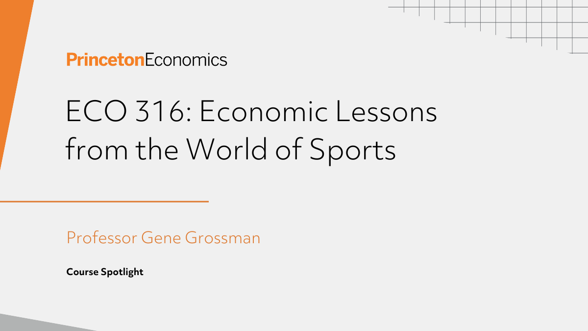 Learn more about ECO 316: Economic Lessons from the World of Sports with Professor Gene Grossman. In the fall semester of 2025, this course included lectures from four former Princeton athletes, now luminaries in the world of sports.