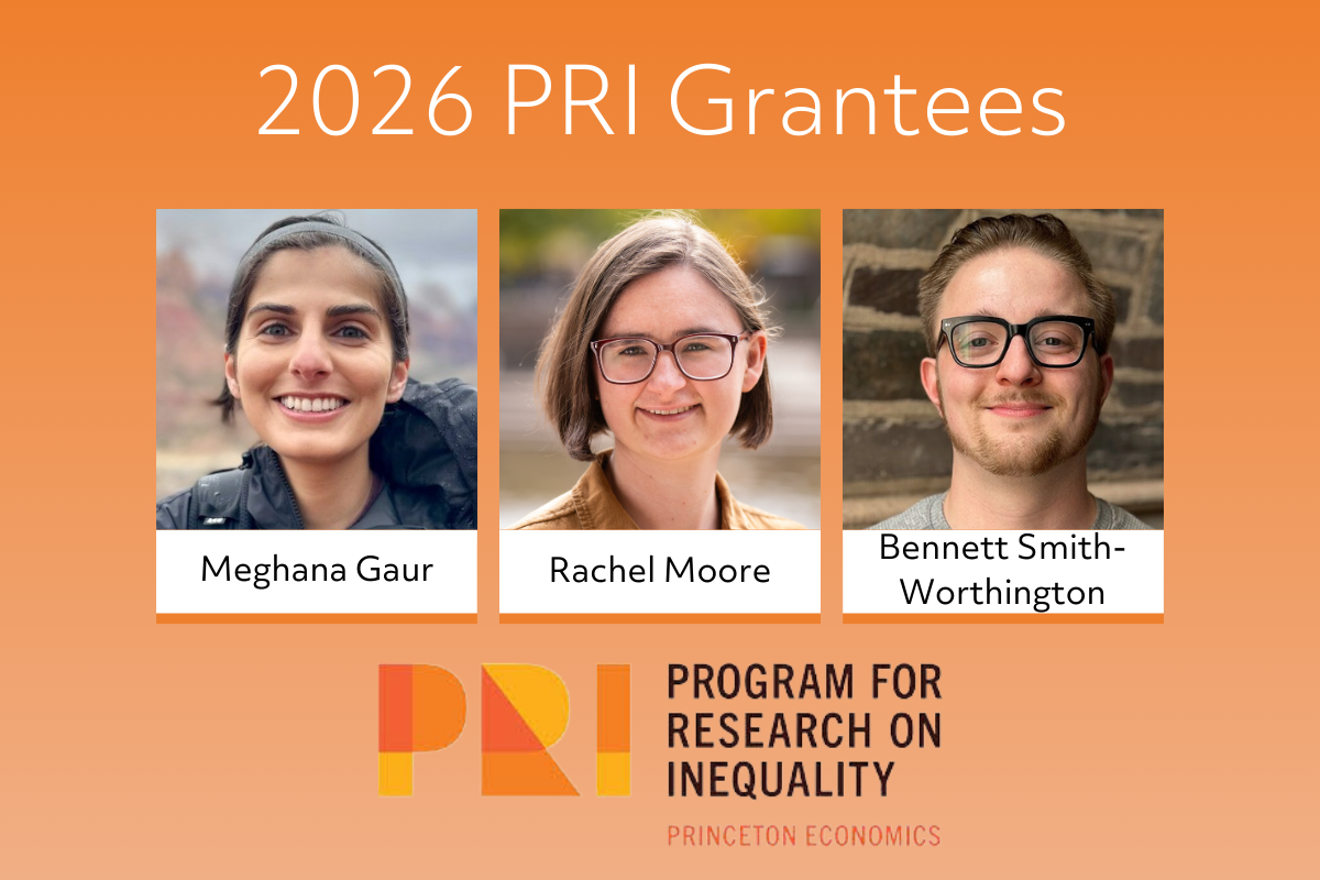 Meghana Gaur, Rachel Moore, and Bennett Smith-Worthington are the recipients of this year's graduate research grants, awarded by PRI, to support new research on inequality.