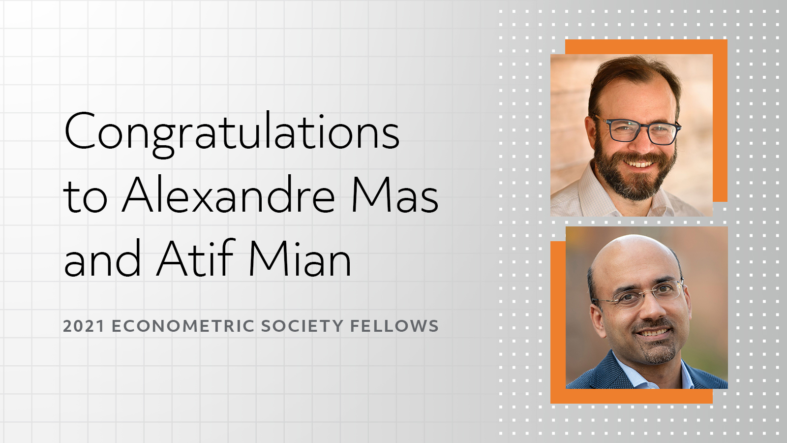 The Economics Department at Princeton University extends warm congratulations to Professors Alexandre Mas and Atif Mian on their election to the Econometrics Society.