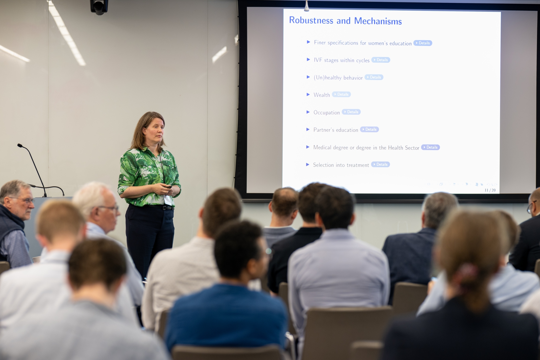 Academics and researchers from universities around the world attended to share new and original research. Highlighting Grossman’s influence among those in the room and the field at-large, Harvard Professor of Economics Pol Antràs began his own talk with a presentation of a detailed network map of Grossman’s role as a mentor in the field.
