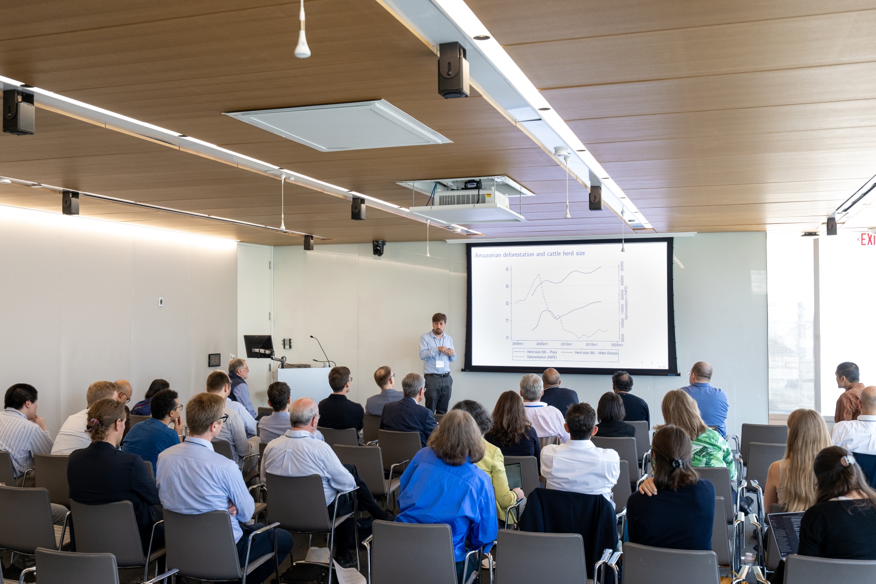 Pol Antràs (Harvard) presents during a session on global value chains and trade in tasks.