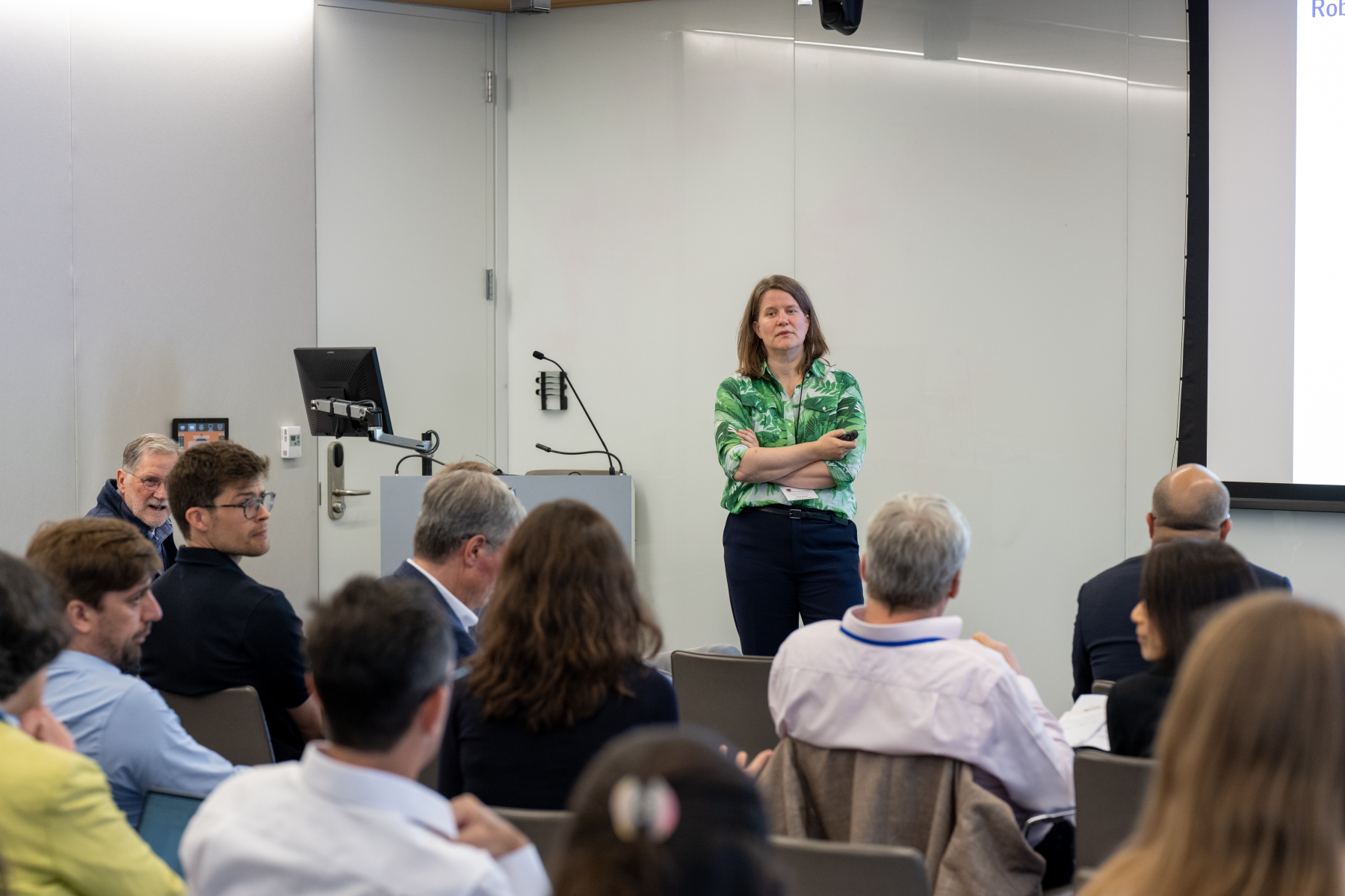 Pol Antràs (Harvard) presents during a session on global value chains and trade in tasks.